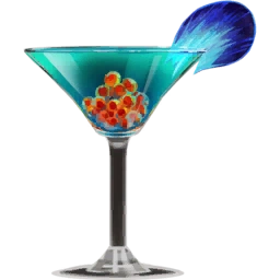 - Description: Fish eggs; swimmer bile; gin and simple syrup