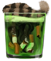 - Description: Rye whisky. Absinthe, cat oil, and rose petals; hurts more on the way out